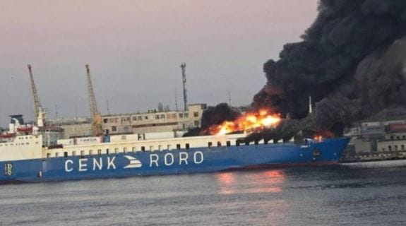 Türk şirket Cenk Ro-Ro’ya ait Panama bayraklı CENK T adlı yolcu ve yük gemisinin Odessa limanında demirliyken bir Rus füzesi tarafından saldırıya uğradığı belirtildi.