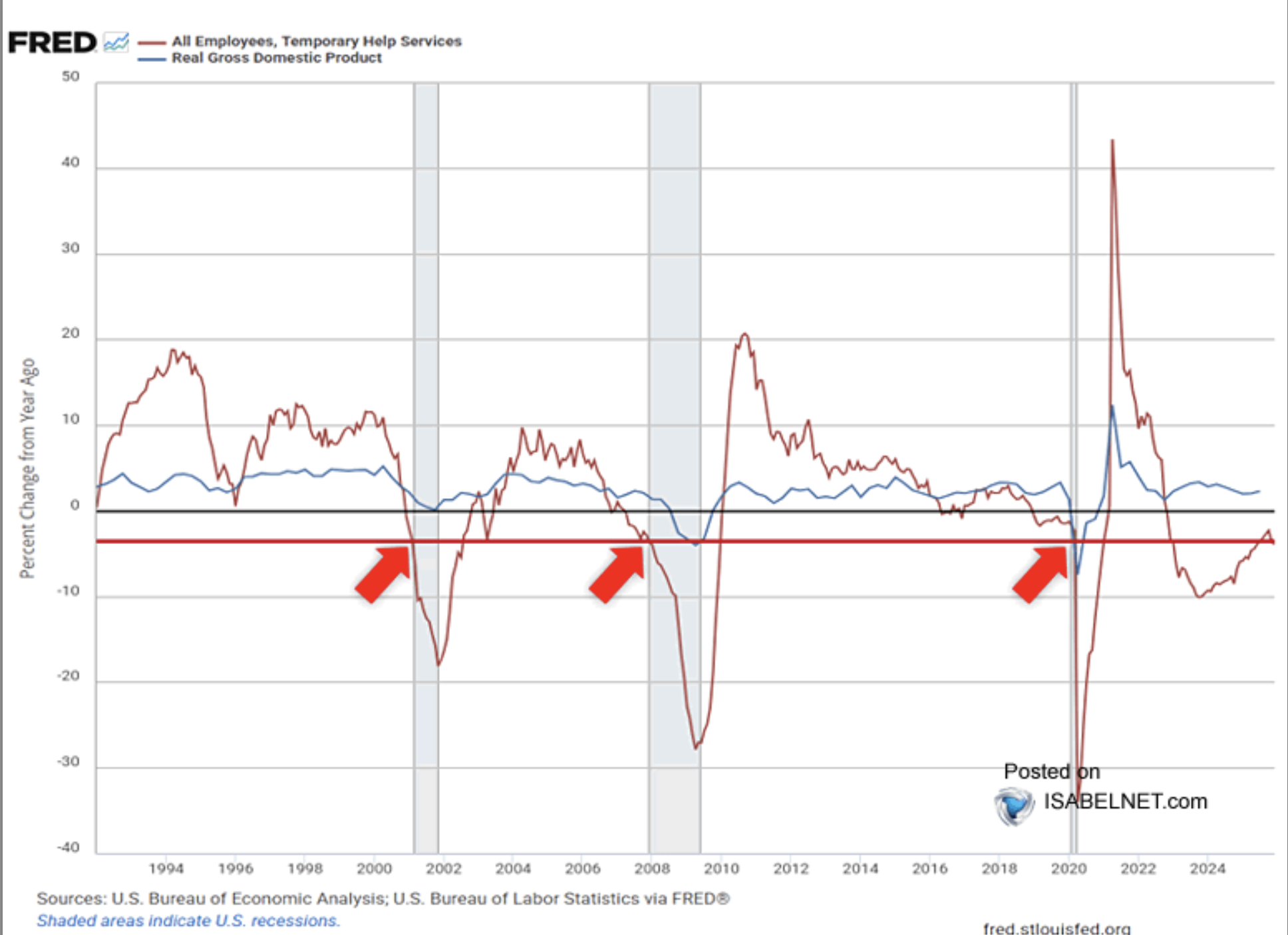 Son veriler, geçici istihdamda yıllık bazda belirgin bir azalmayı işaret ediyor. Bu düşüş, geçmişteki resesyon öncesi dönemlerde sıkça gözlemlenen kritik bir eşik altında gerçekleşiyor. Bununla birlikte reel ekonomik büyüme hala pozitif. Yani iş gücü piyasasının en kırılgan kısmı zayıflarken, genel ekonomi bu bozulmayı tam olarak hissetmemektedir.